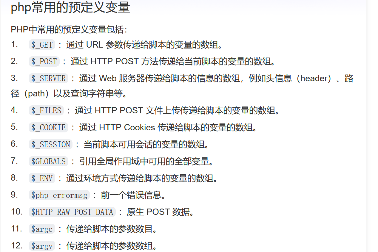 PHP预定义变量,也称为超全局变量,是在PHP脚本的任何地方都可以访问的内置变量。这些变量用于存储有关PHP运行环境的全局信息,例如服务器信息、客户端请求数据、会话信息等。