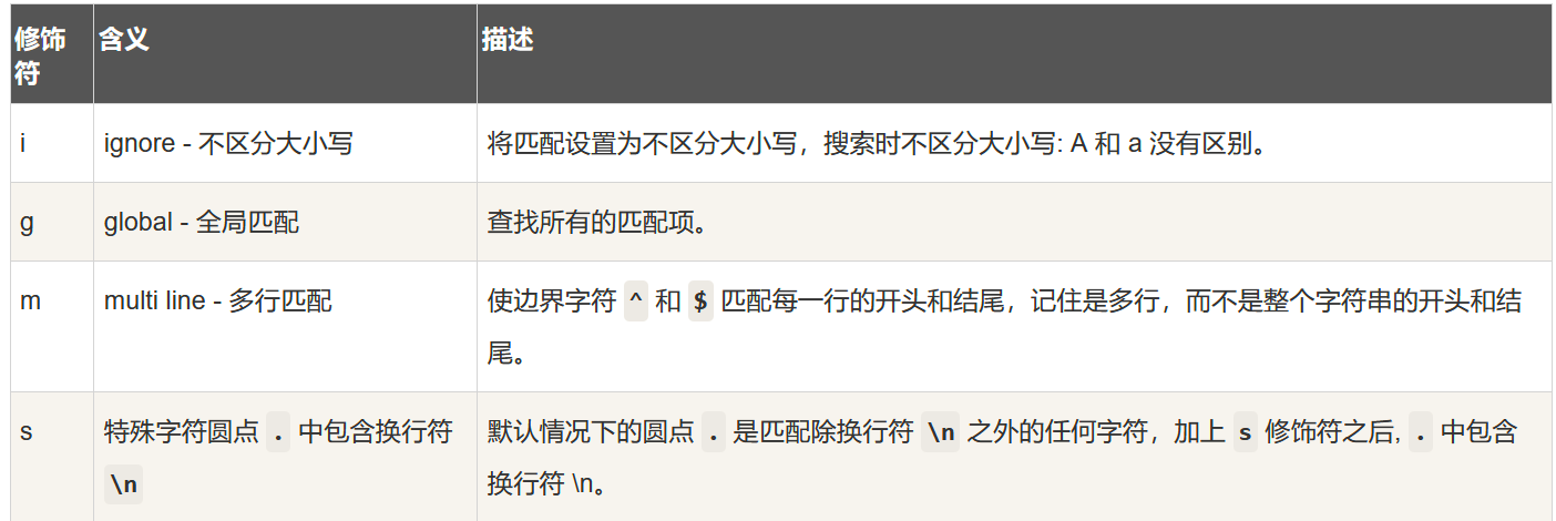 标记也称为修饰符,正则表达式的标记用于指定额外的匹配策略。