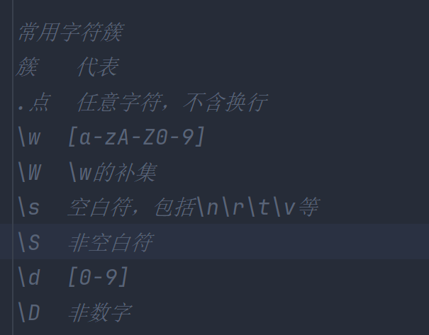 补集[^abcd]表示能匹配的字符是除了a,b,c,d的其他所有字符
