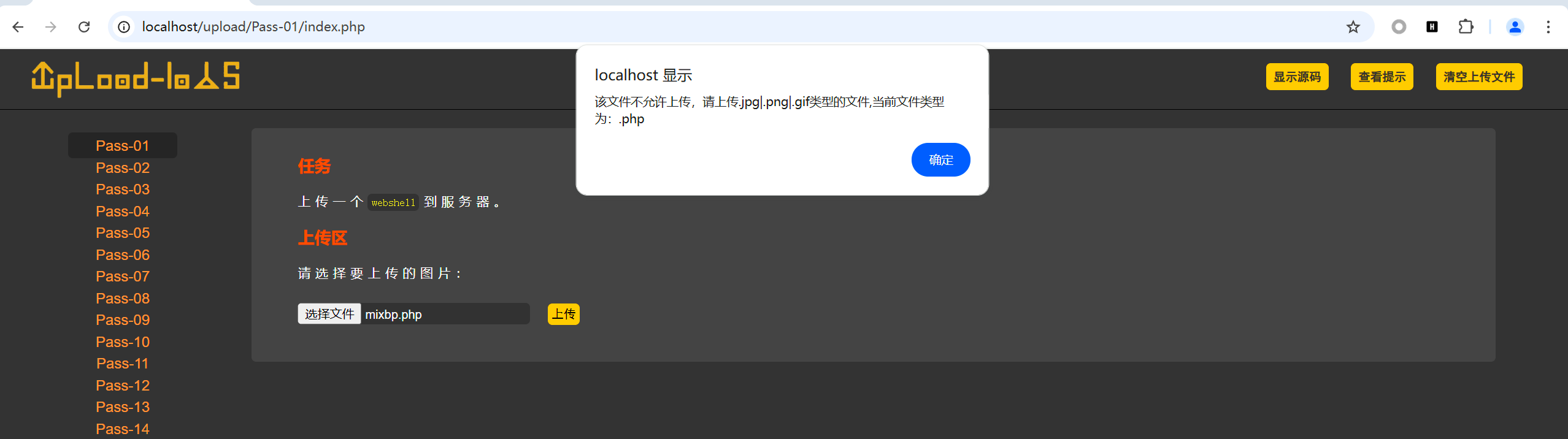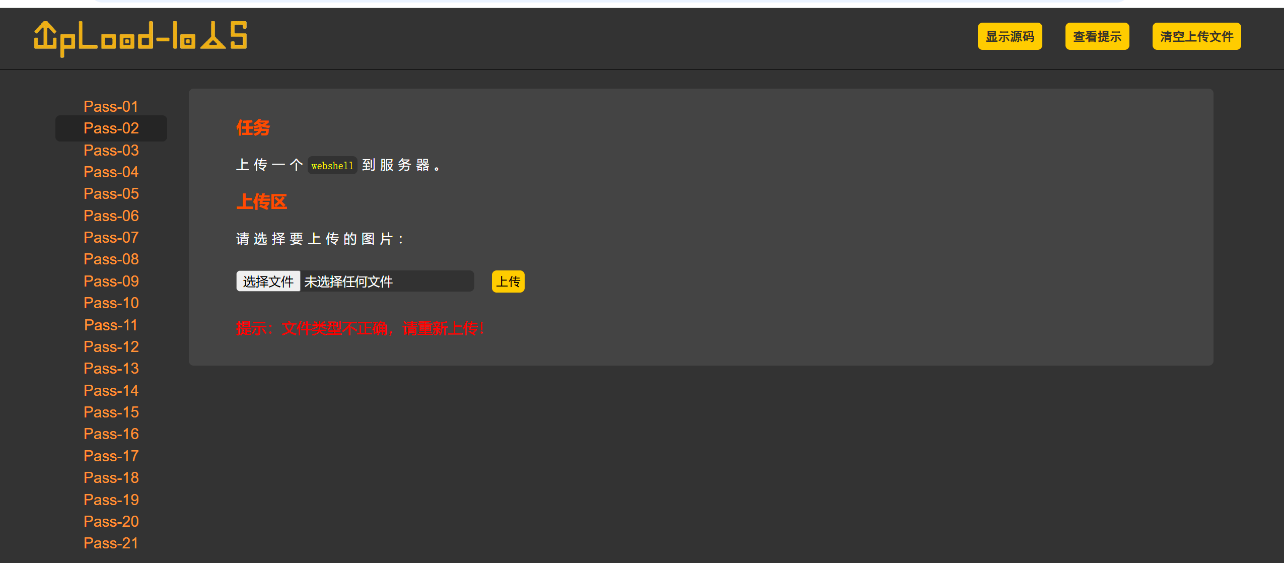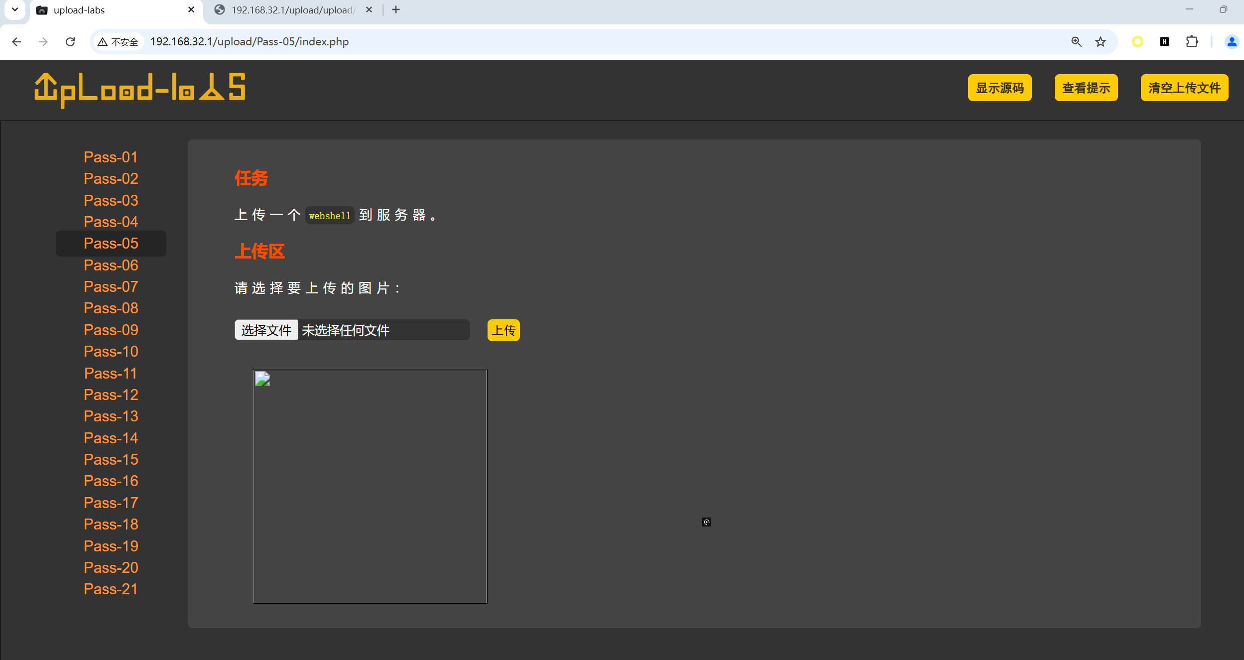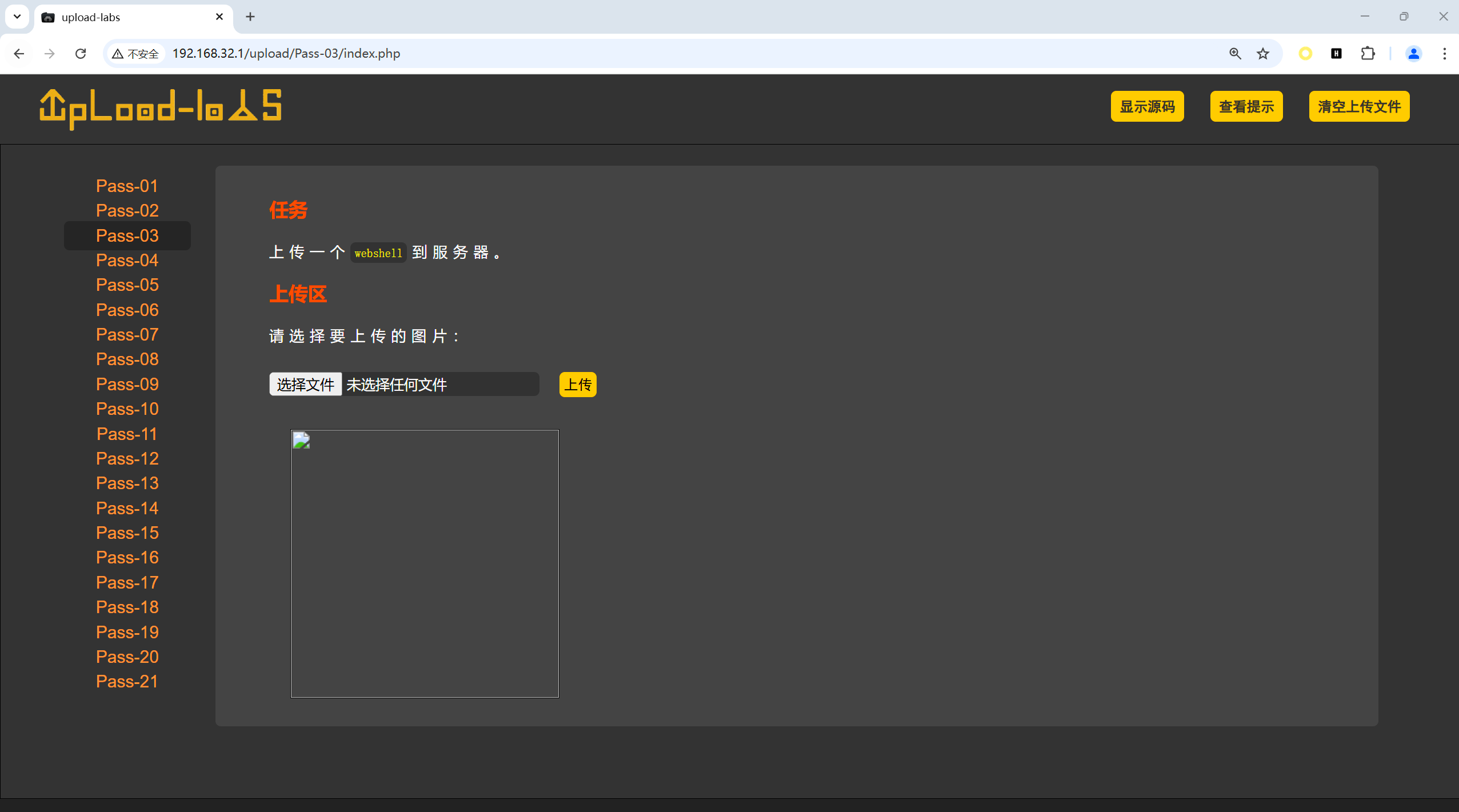 原理:在系统中文件后缀格式会自动解析成小写,所以可以用大写绕过,且这关的源码查看后发现没有将后缀改为小写