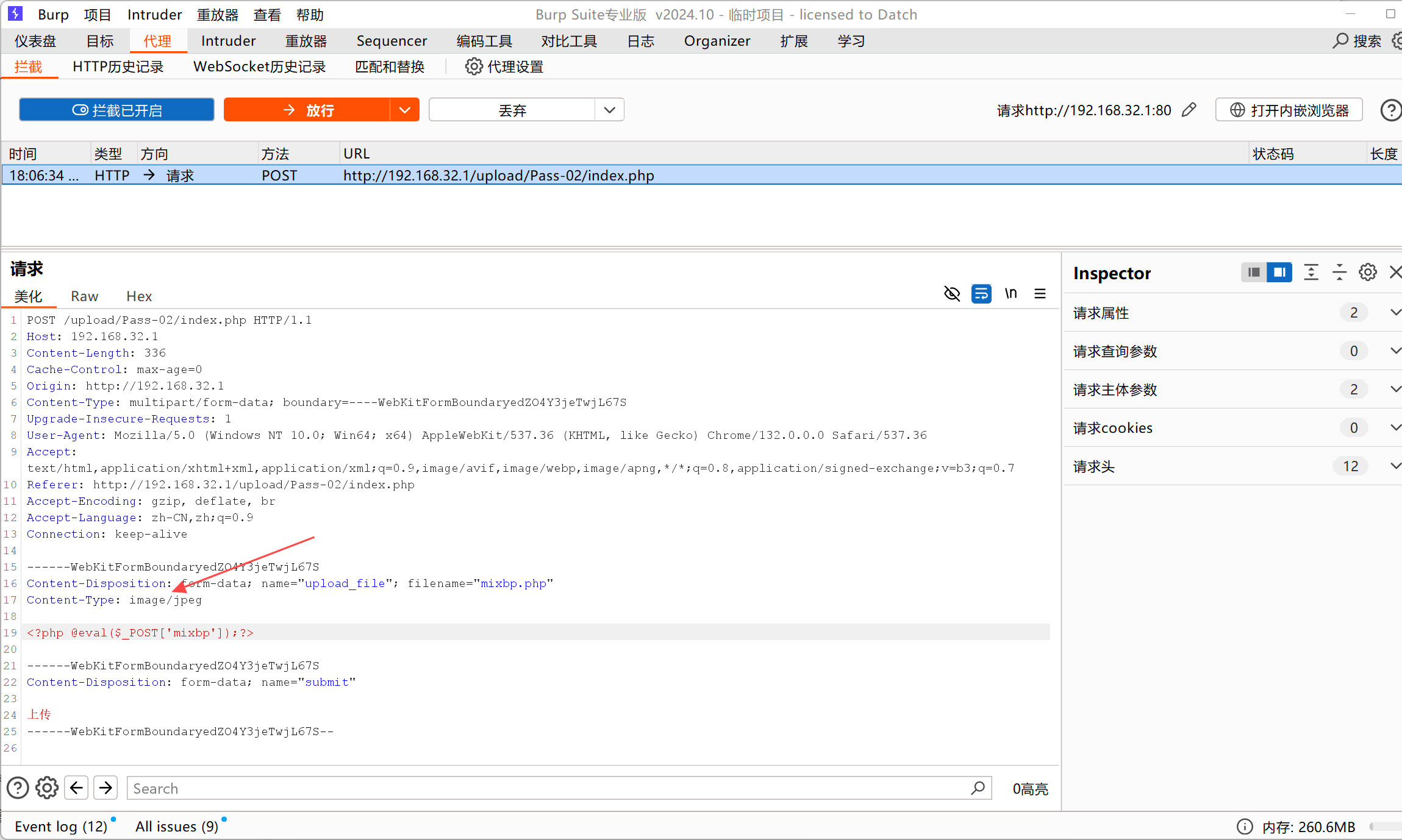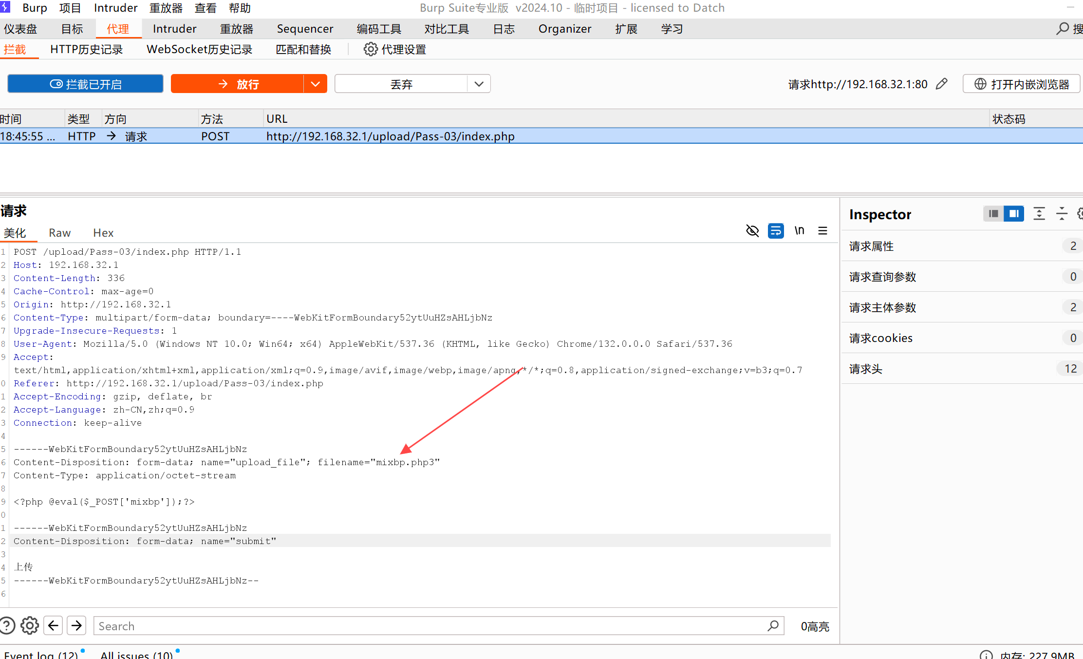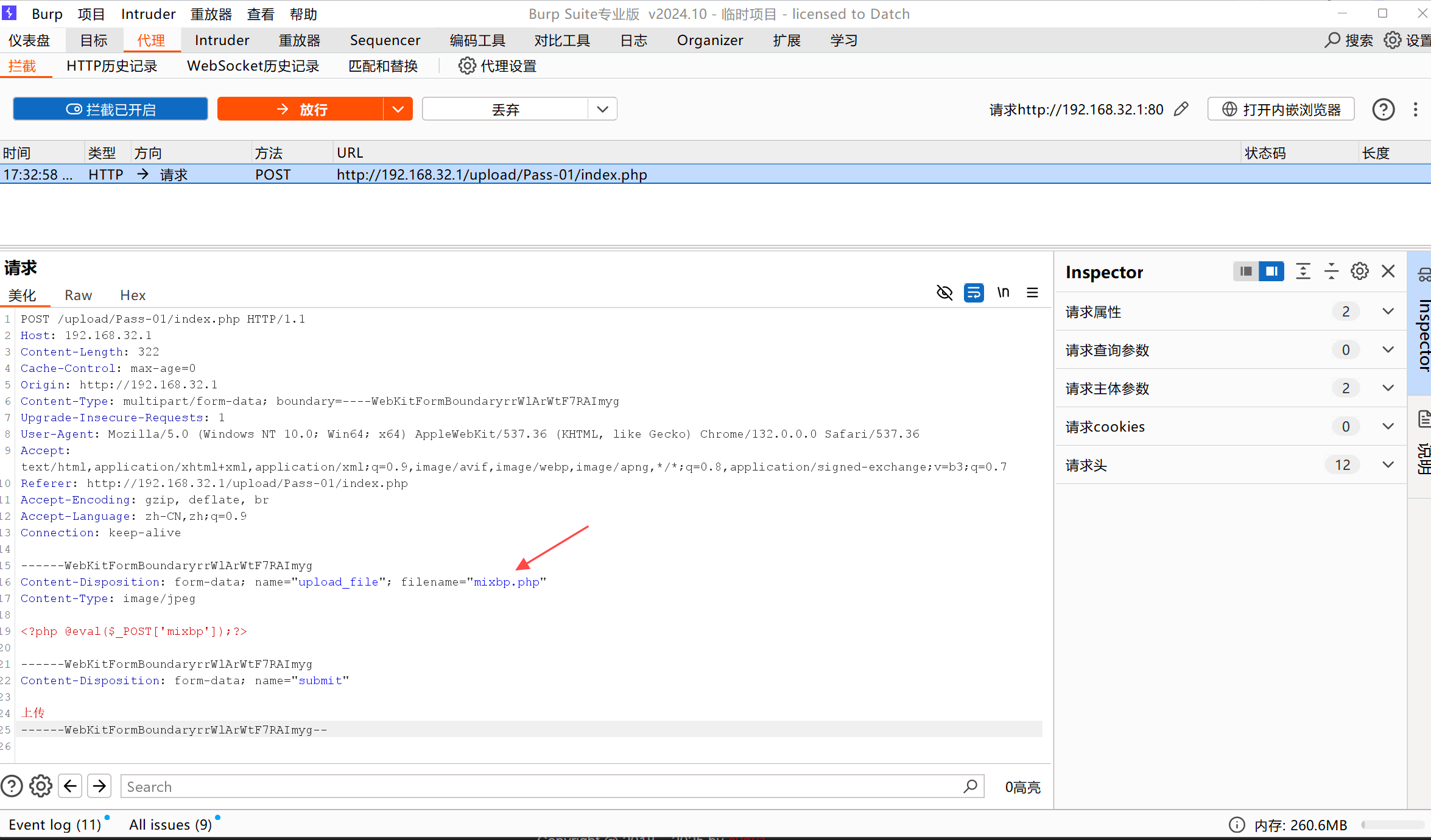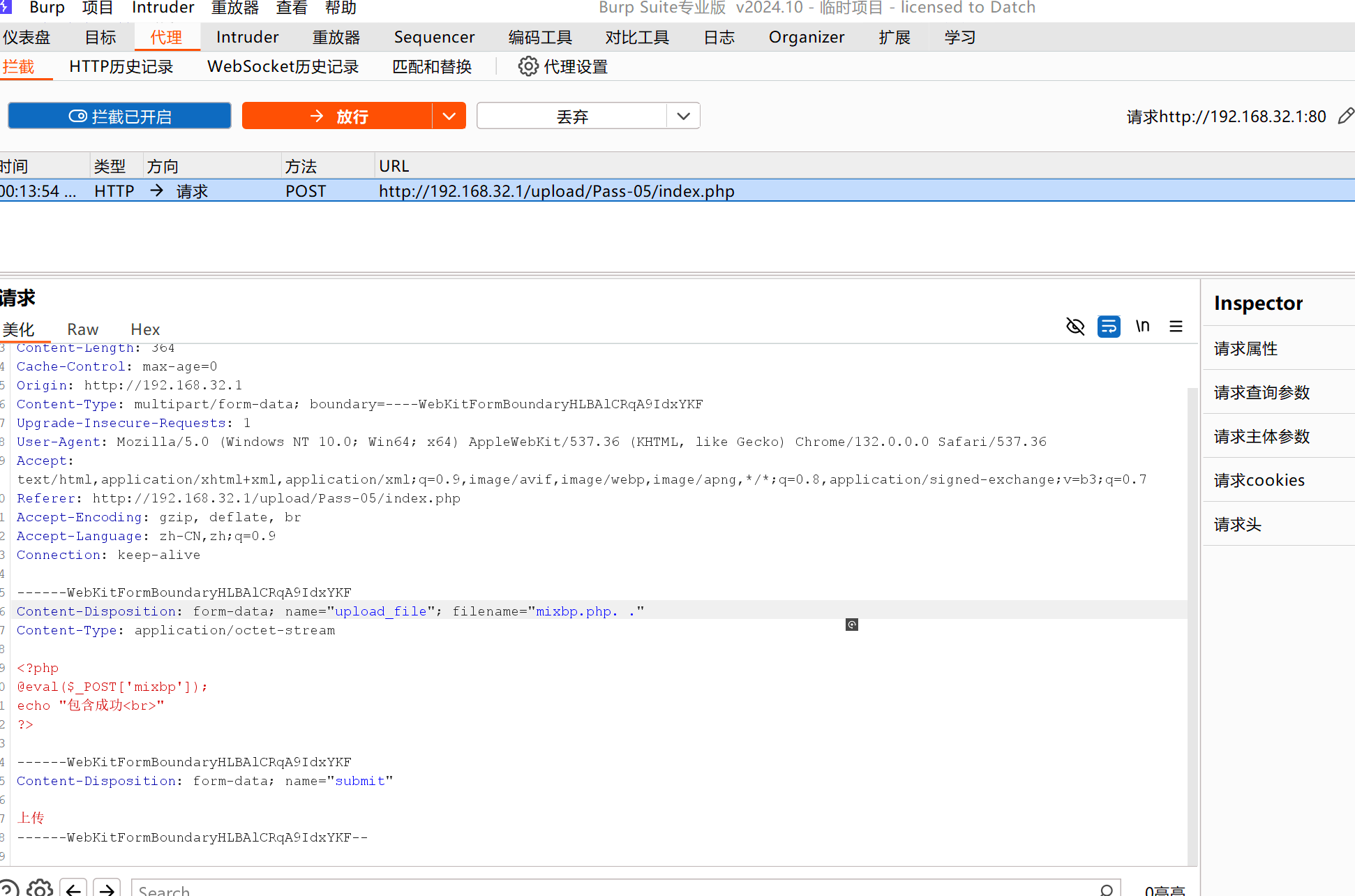 在../upload/后添加mixbp.php空格,加空格是为了后续的hex修改,加其他字符也可以(就是一个占位符方便修改)
