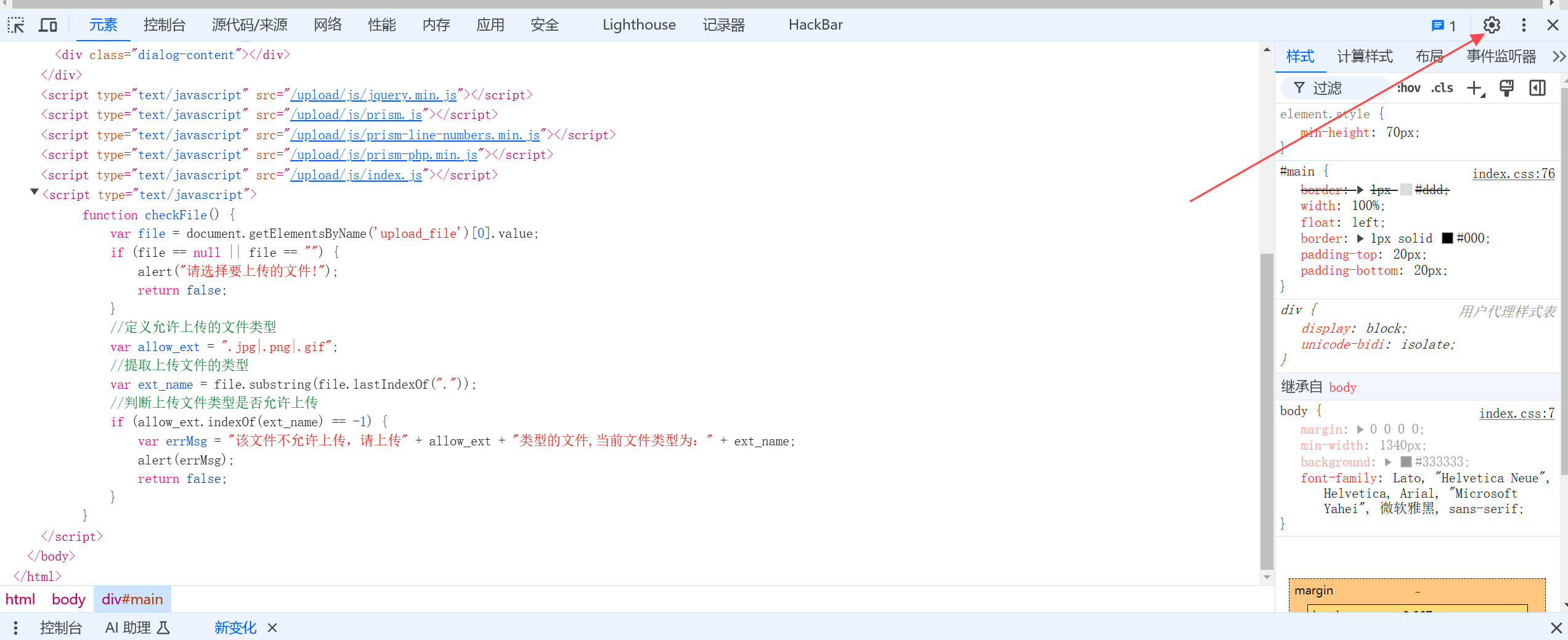 原理:查看源码发现这题会根据上传文件的前两个字节来判断文件格式,就是先将前两个字节从十六进制转换成十进制然后再白名单中比对。所以我们可以使用字节标识绕过