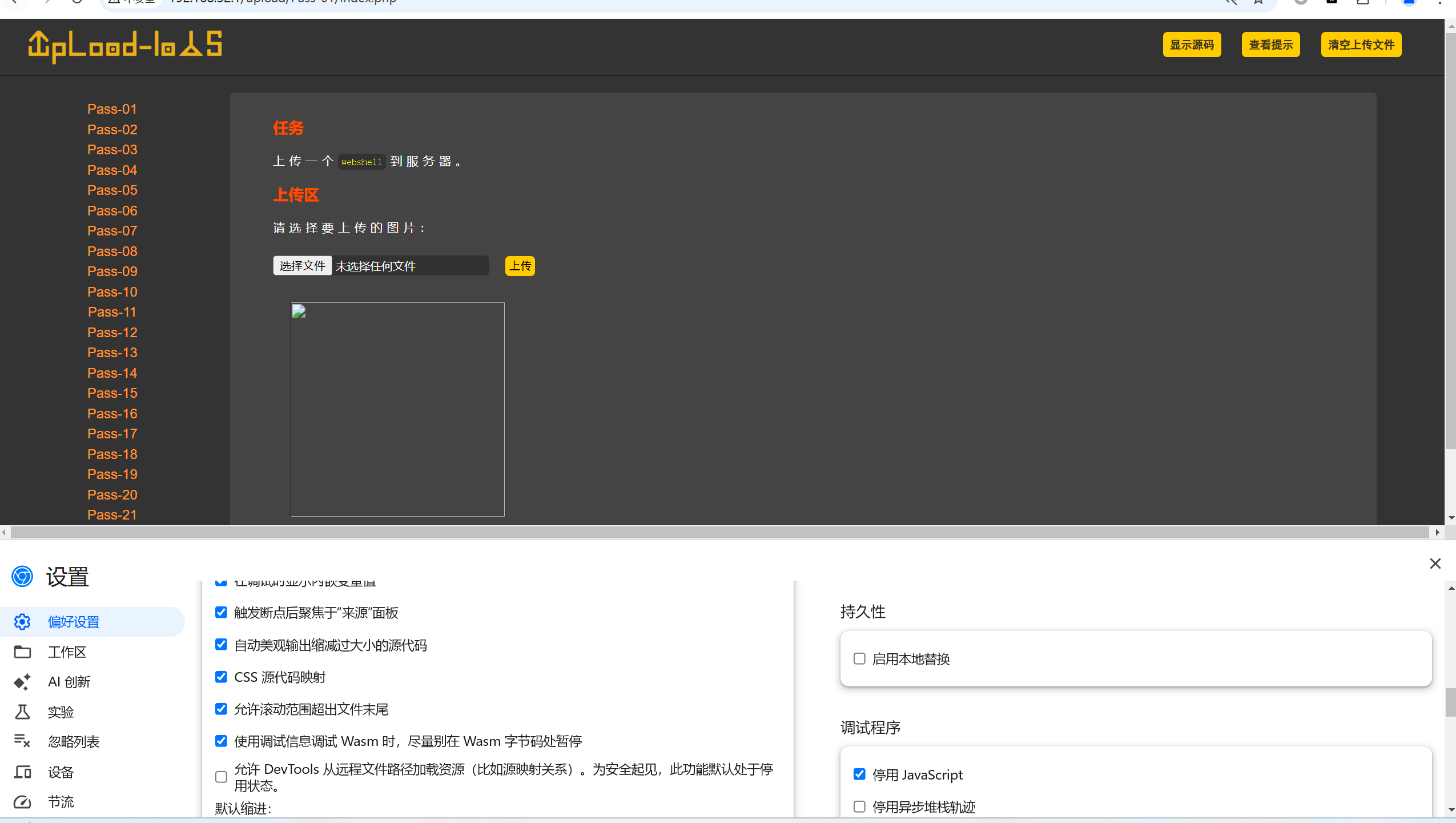 原理:这关源码采用白名单,最终文件存放位置使用拼接形式,使用%00截断,需要php版本<5.3.4,并且magic_quotes_gpc关闭。
