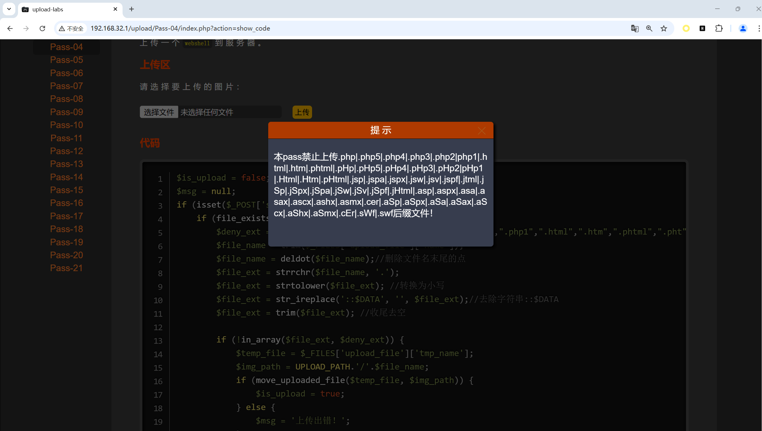 注意:这关中,要实现多后缀解析漏洞需要在配置文件中修改配置 AddHandler application/x-httpd-php .php