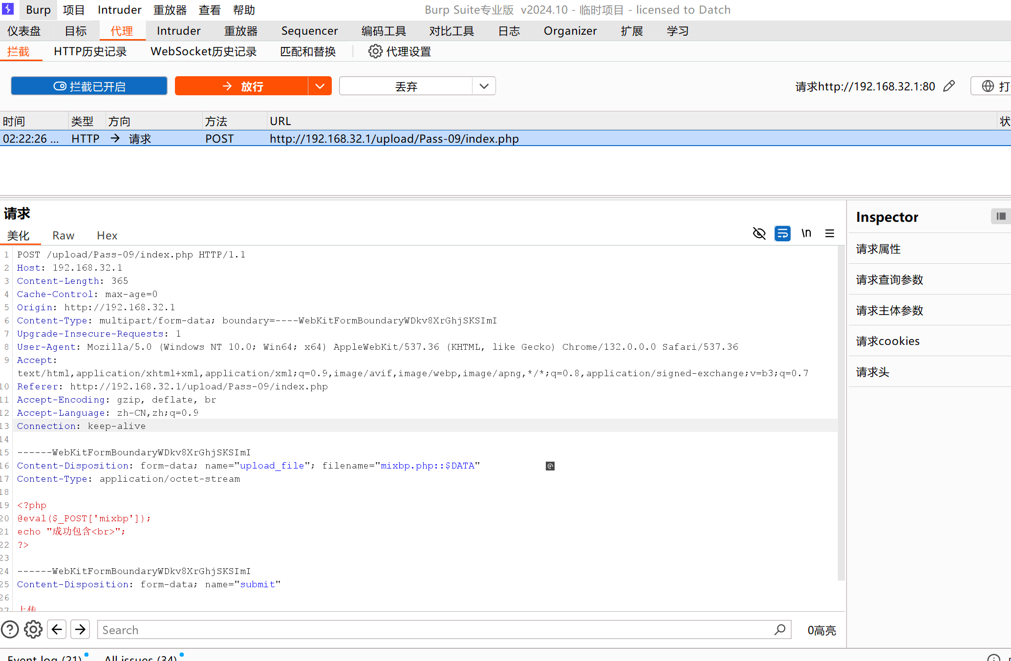 构造mixbp.jpg文件,内含一句话木马,并且输出包含成功方便判断是否包含成功