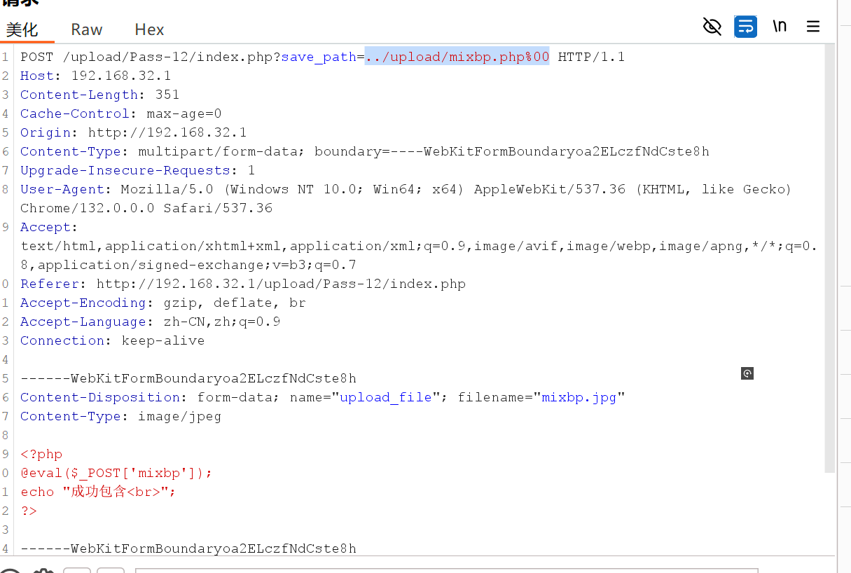 提交一个mixbp.jpg文件然后抓包,并修改save_path为../upload/mixbp.php%00