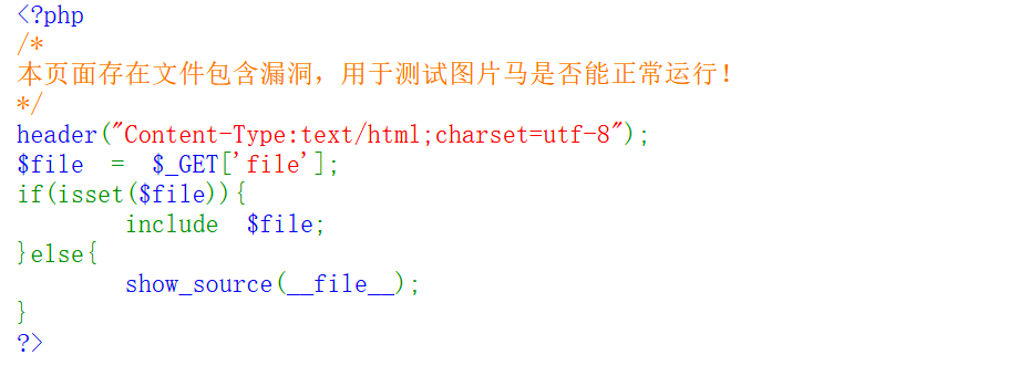 点击文件包含按钮,出现代码,这里用GET传参来接收file文件