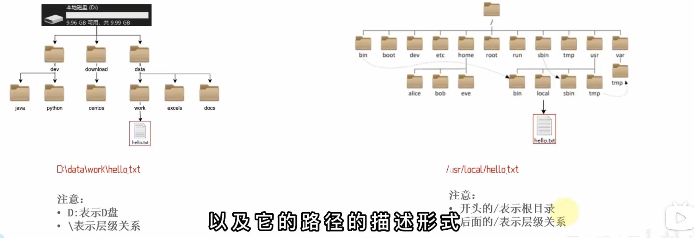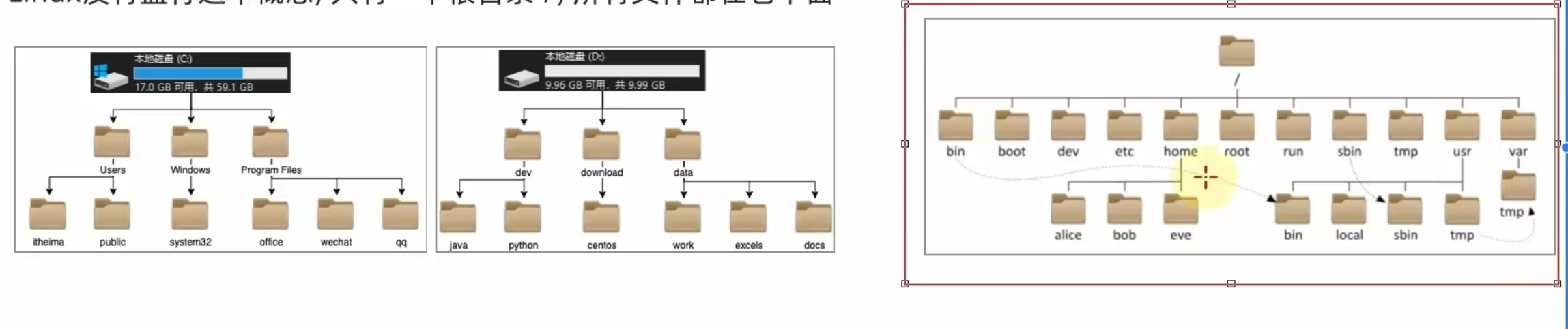 Linux没有盘符这个概念,只有一个根目录/,所有文件都在它下面