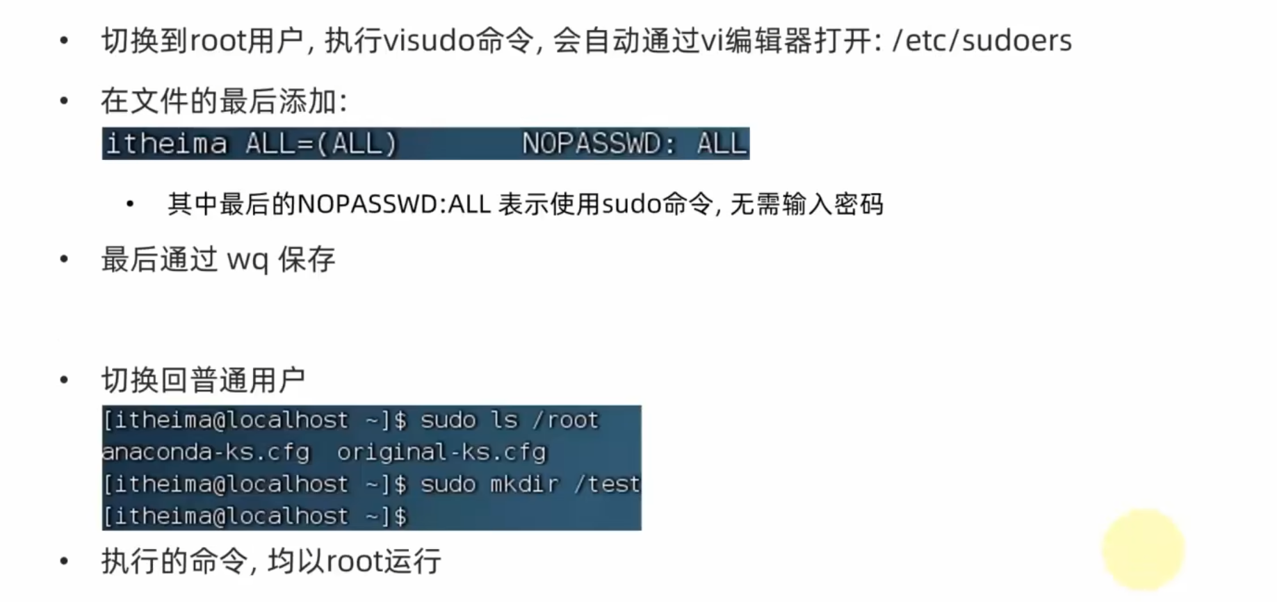 - 但是并不是所有的用户,都有权利使用sudo,我们需要为普通用户配置sudo认证