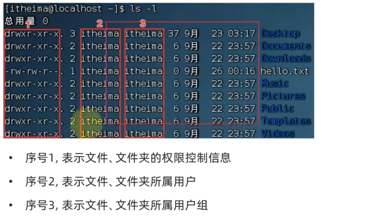 通过ls -l可以以列表形式查看内容,并显示权限细节