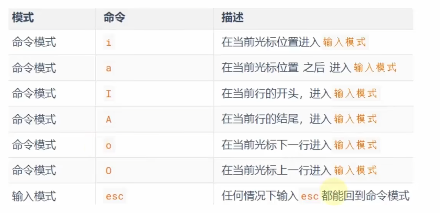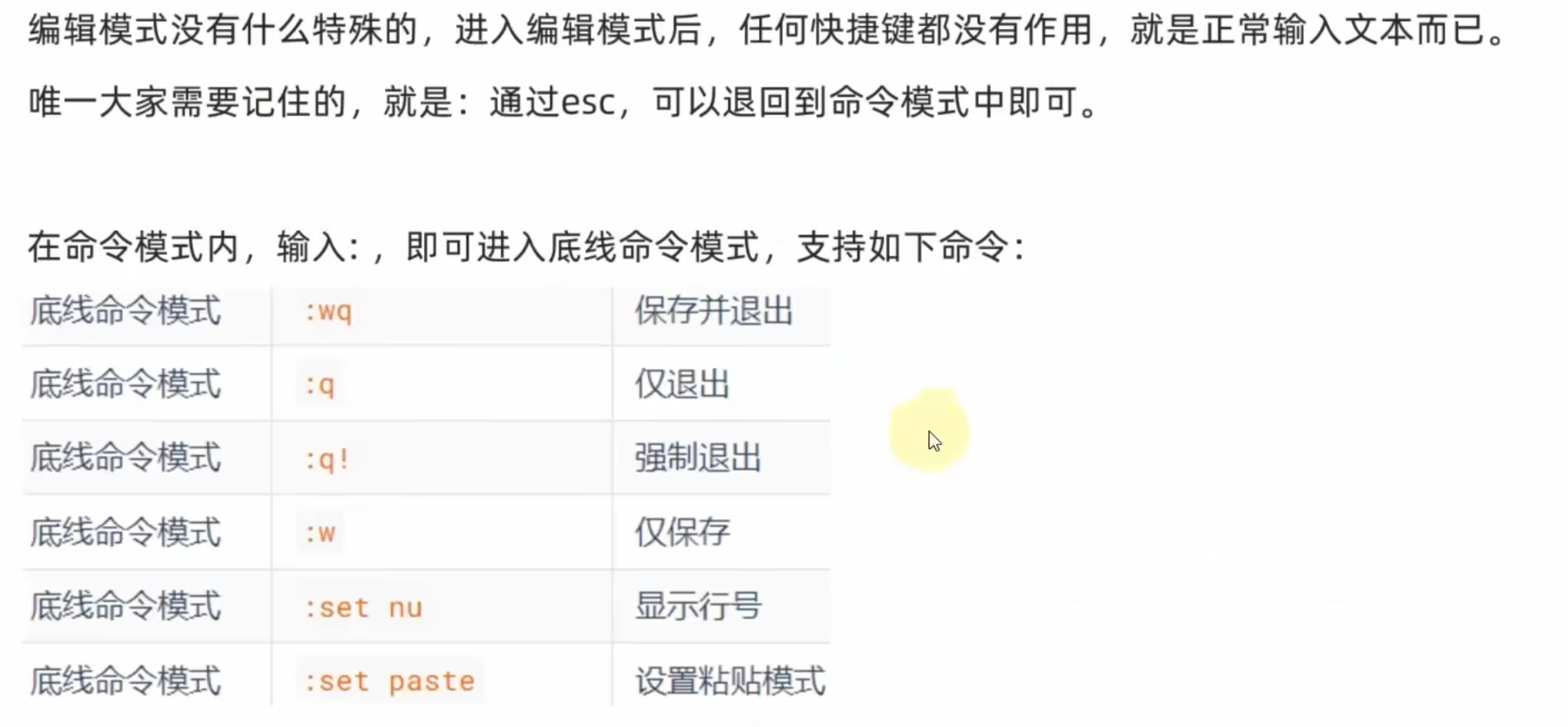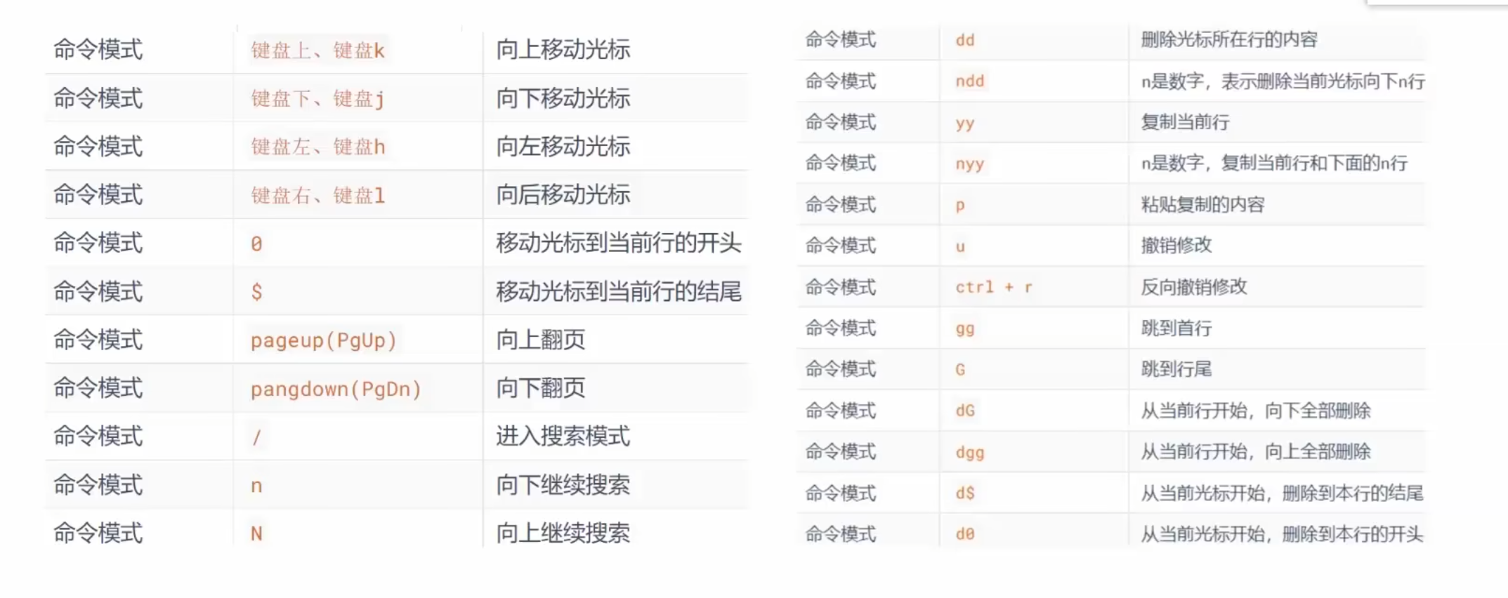 命令模式下,所敲的按键编辑器都理解为命令,以命令驱动执行不同的功能
