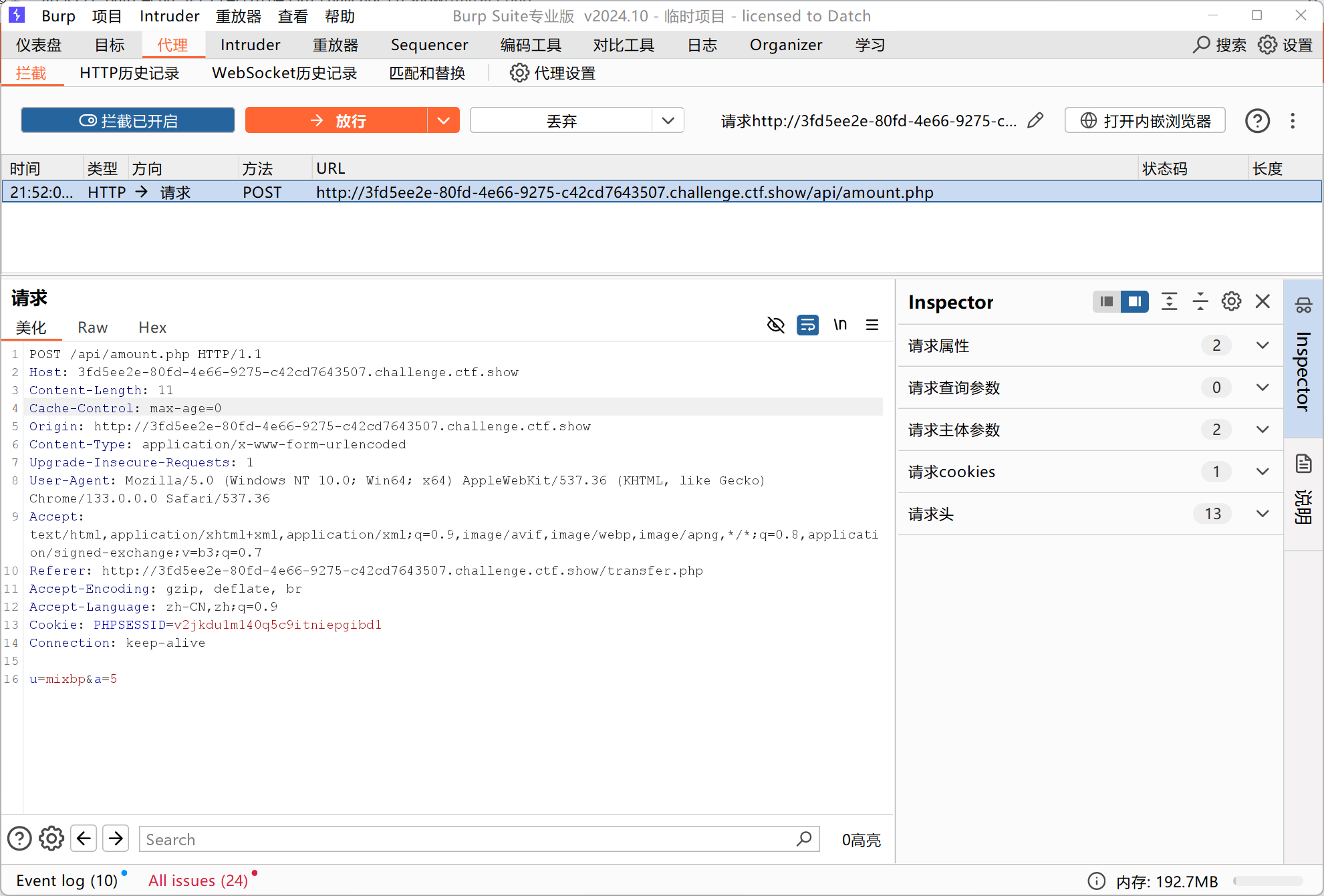 发现转账的路径为/api/amount.php,并且使用POST方法来发送数据u=mixbp&a=5