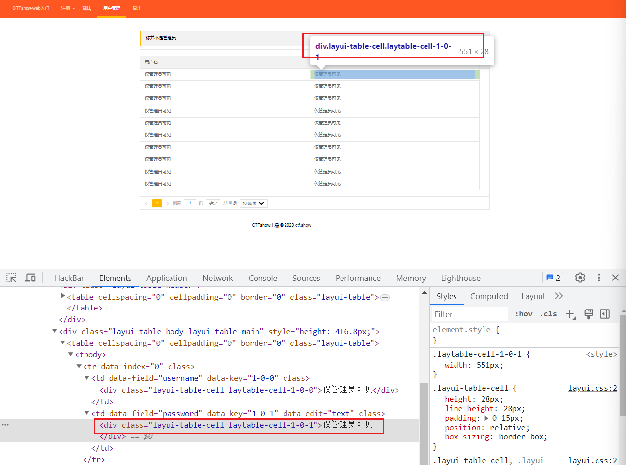 可以看到前端代码中将要显示admin密码的地方类为layui-table-cell laytable-cell-1-0-1