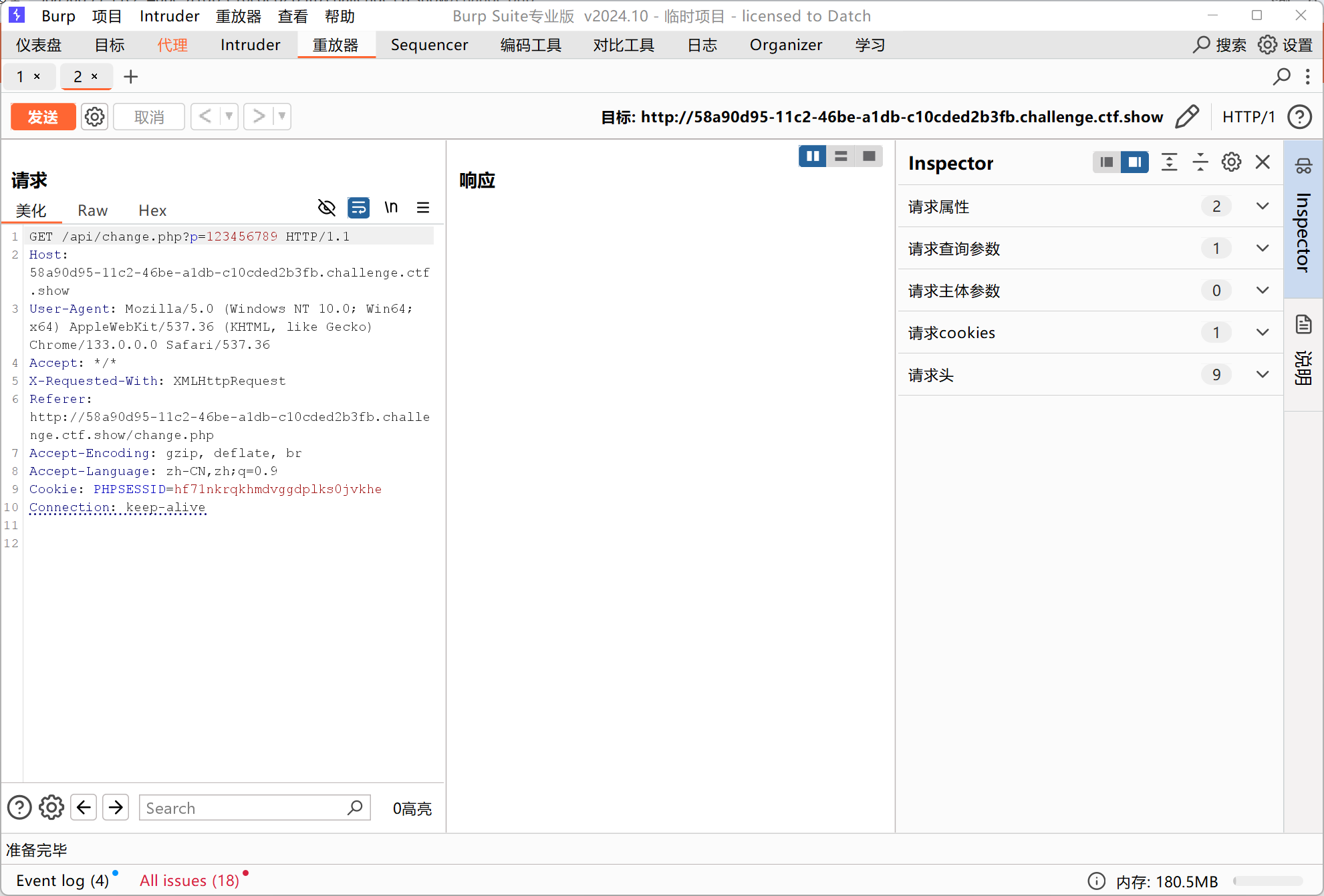 | import requests url = "http://c7e62c4c-a965-48a5-9c7a-390114141304.challenge.ctf.show/api/amount.php" headers ={'Cookie':'PHPSESSID=???'} #自己账号登陆后的sessionid