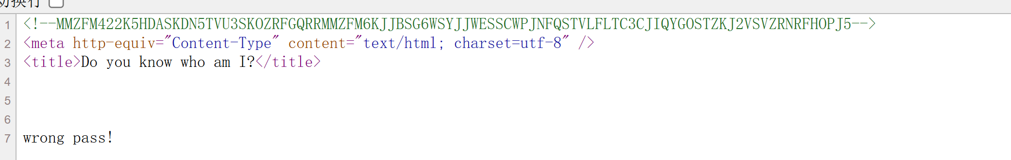 2、admin登录,显示wrong pass,查看源代码发现一串加密字符串
