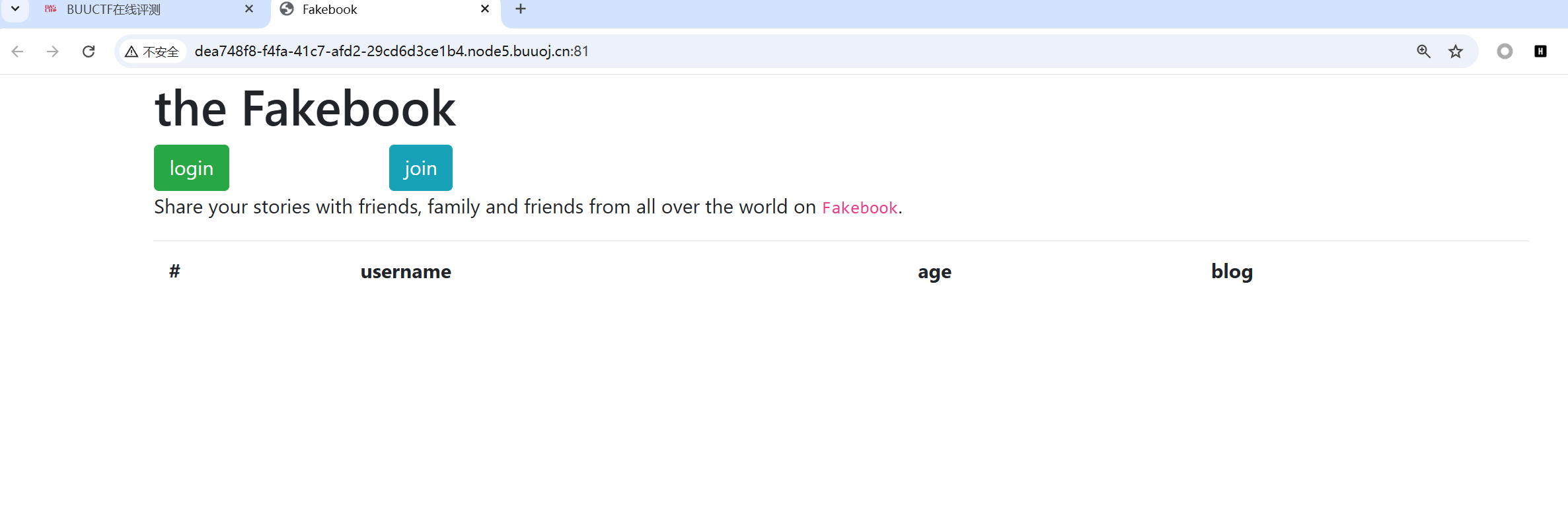 网鼎杯2018Fakebook1 1、首先启动靶机并访问,发现是一个博客的登录注册页面