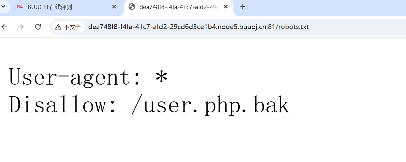 3、既然没有漏洞我们先访问下url/robots.txt看看有没有有用的信息,看到一个/user.php.bak