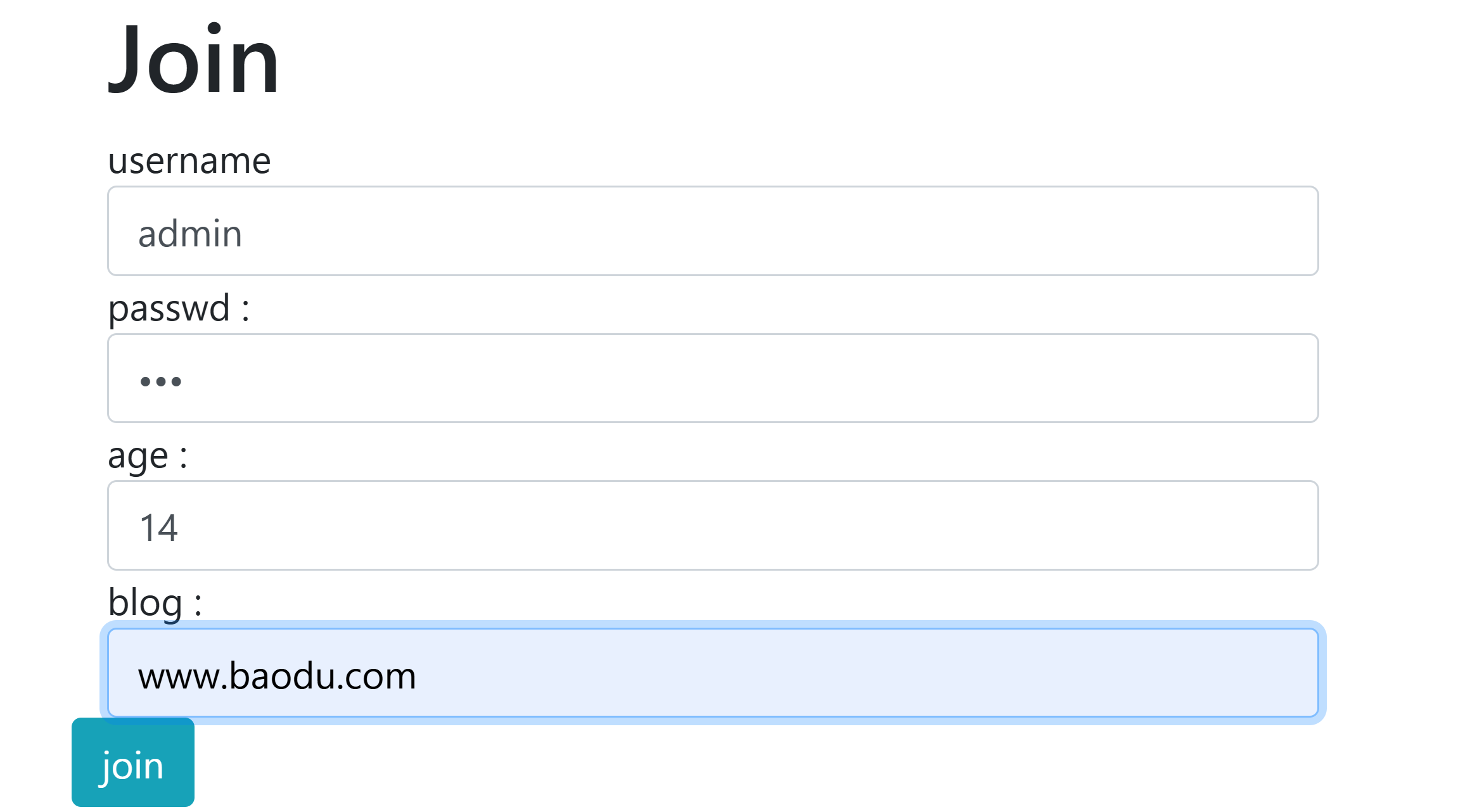 5、去注册界面随便注册一个账号,blog这里我们用www.baidu.com