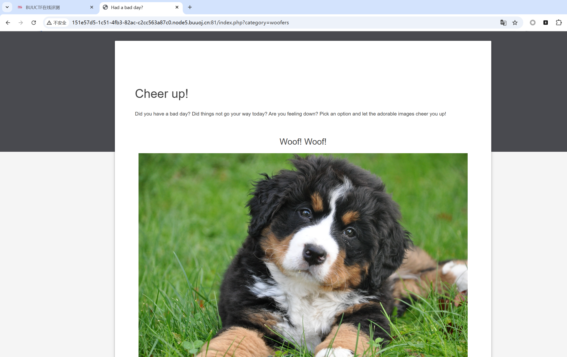2、注意到url中的get传参?category=woofers我们试试随便传一个值比如1,显示只支持提供woofers和meowers