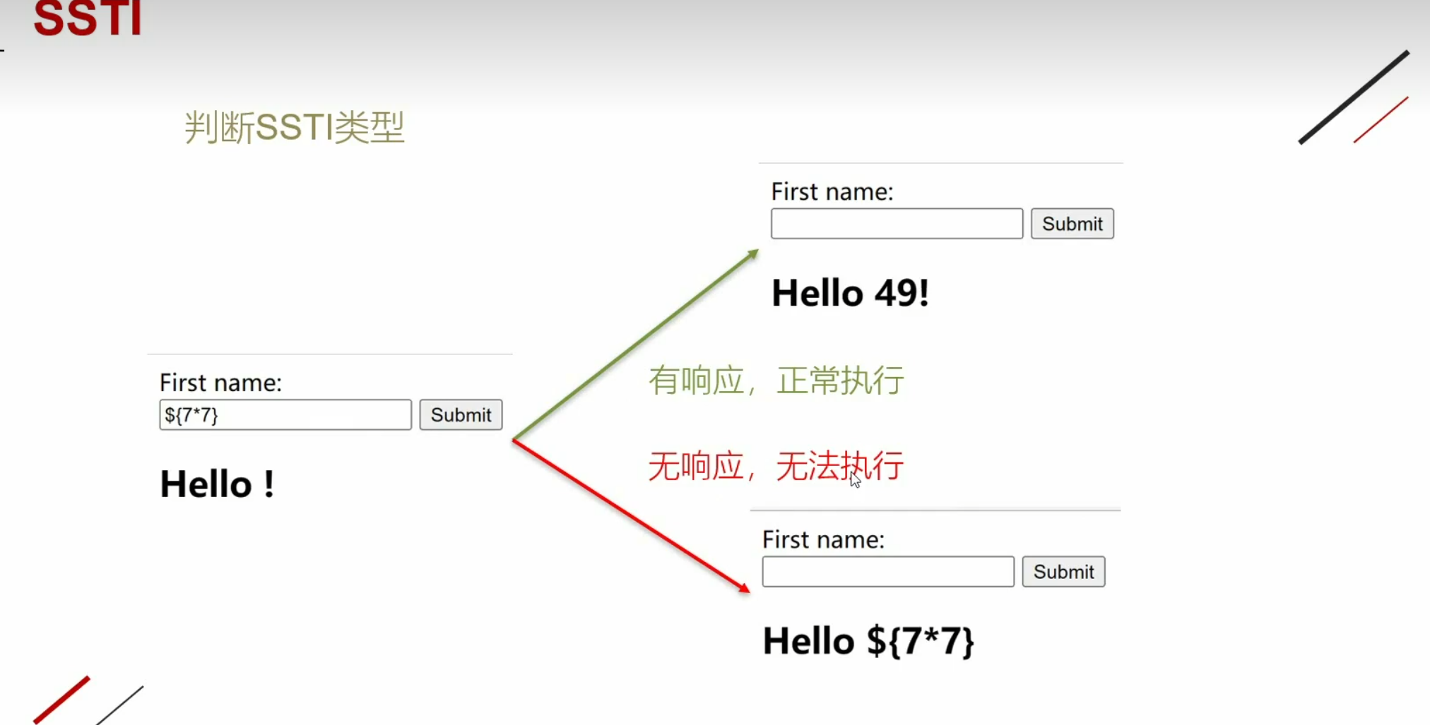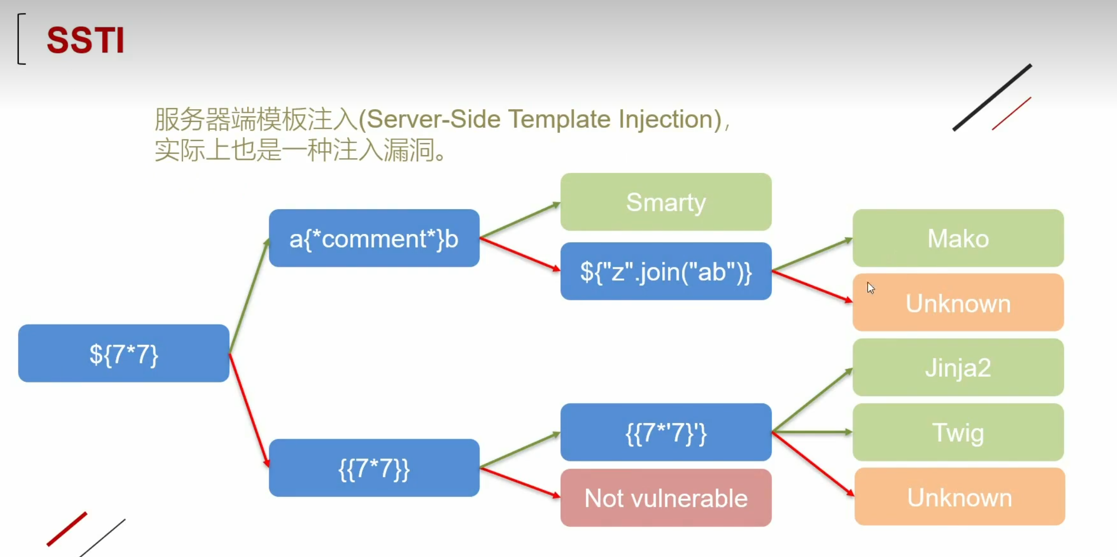 SSTI模版注入漏洞介绍 SSTI 是 Server-Side Template Injection即 服务端模板注入,它是一种安全漏洞攻击技术。当应用程序在服务器端使用模板引擎来呈现动态生成的内容时,如果用户可以控制模板引擎的输入,就可能导致 SSTI 漏洞。