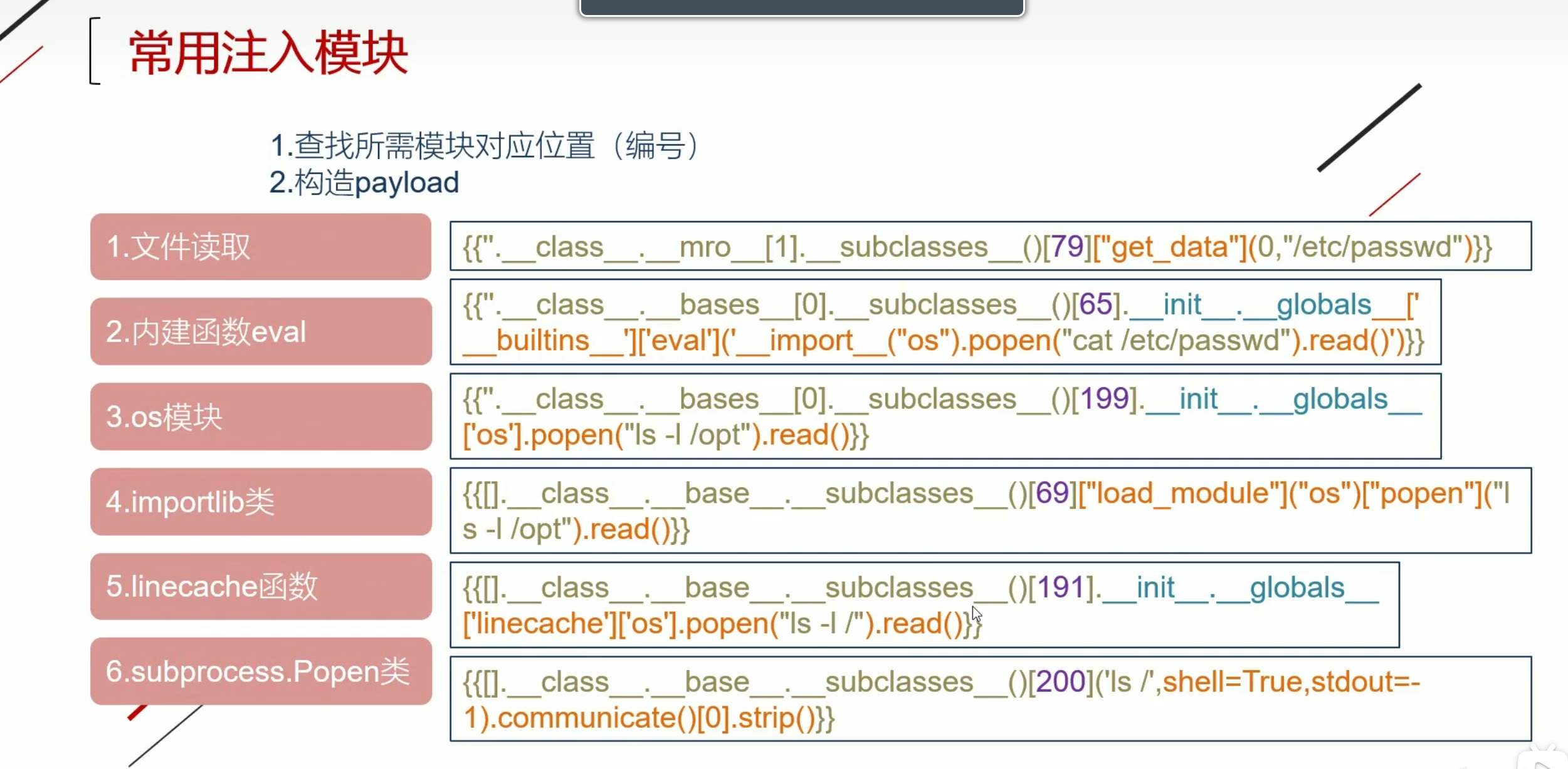 linecache函数执行命令 linecache函数可用于读取任意一个文件的某一行,而这个函数中也引入了os模块,所以我们也可以利用这个linecache函数去执行命令
