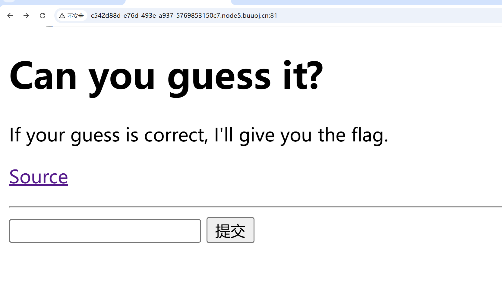 $secret = bin2hex(random_bytes(64)); if (isset($_POST['guess'])) { $guess = (string) $_POST['guess']; if (hash_equals($secret, $guess)) { $message = 'Congratulations! The flag is: ' . FLAG; } else { $message = 'Wrong.'; } } ?> <!doctype html> <html lang="en"> <head> <meta charset="utf-8"> <title>Can you guess it?</title> </head> <body> <h1>Can you guess it?</h1> <p>If your guess is correct, I'll give you the flag.</p> <p><a href="?source">Source</a></p> <hr> <?php if (isset($message)) { ?> <p><?= $message ?></p> <?php } ?> <form action="index.php" method="POST"> <input type="text" name="guess"> <input type="submit"> </form> </body> </html>