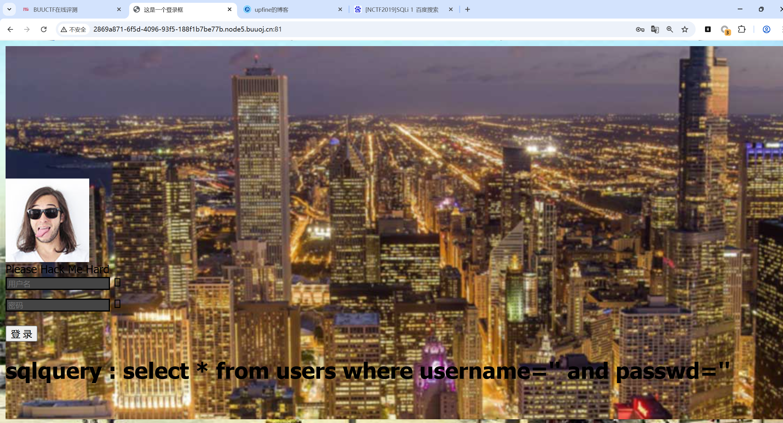 这里有个提示信息,如果passwd的值等于admin的密码则登录成功,但是admin被过滤了,这里可以采用正则表达式来获取密码的值,确定获取密码的方式后确定注入点,我们可以对username中的第二个字符进行转义,使后面的’ and passwd=’成为username的内容。然后最后用%00代替#和–截断
