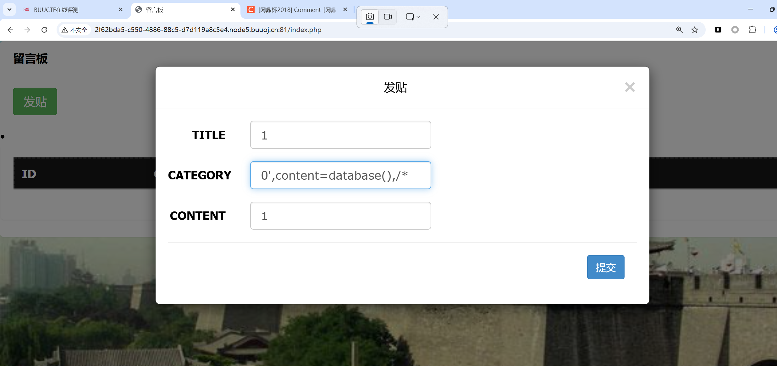 然后查看提交结果,在留言,也就是content参数,输入*/#,闭合前面(/**/注释)的本来的content,#用来注释后面的引号