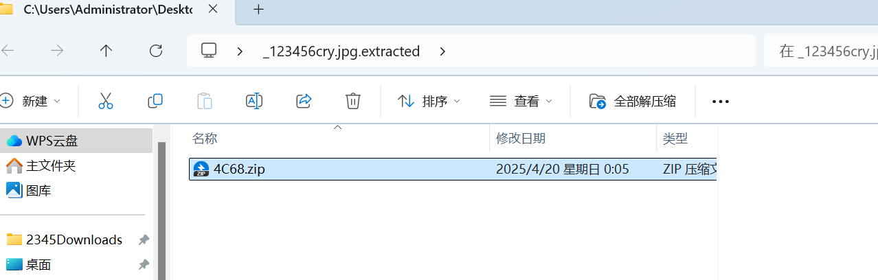 用010editor打开4C68.zip,然后搜索jpg,将目录区的01改为00去除伪加密