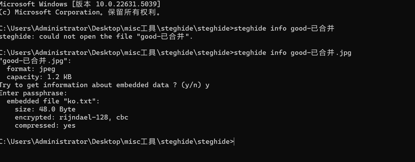 发现隐藏了一个ko.txt文件,然后继续用steghide提取隐藏文件