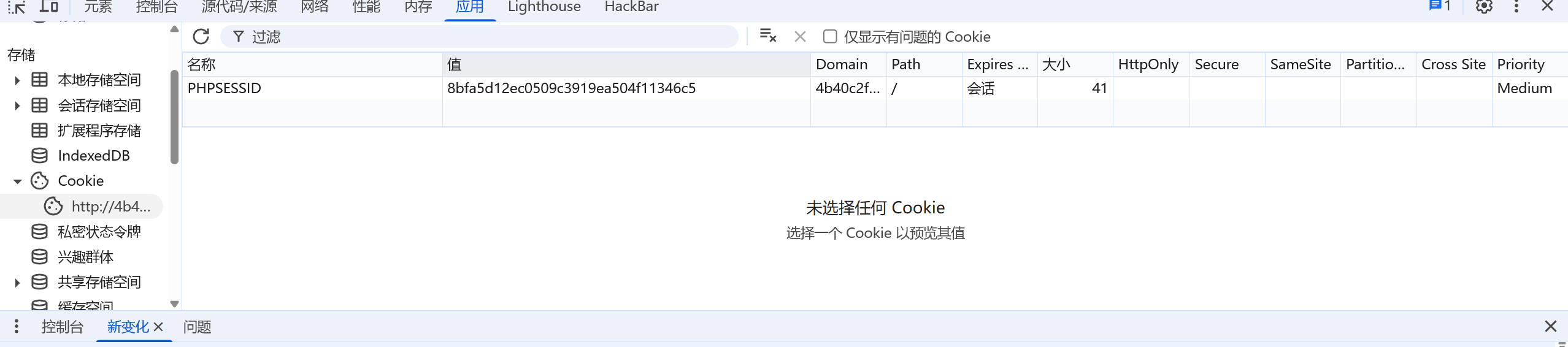 php的session默认存储文件名是sess_+PHPSESSID的值,先F12查看当前的session的值