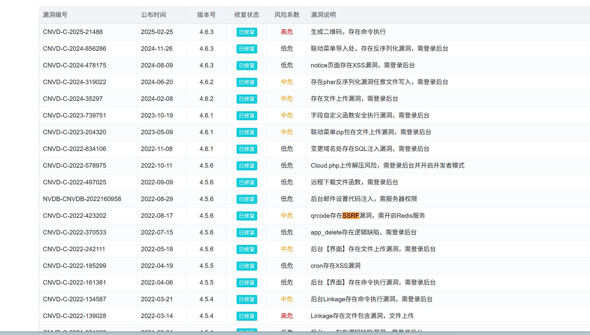 在官网上找到迅睿CMS已知漏洞公示,发现存在一个已知的ssrf的漏洞。