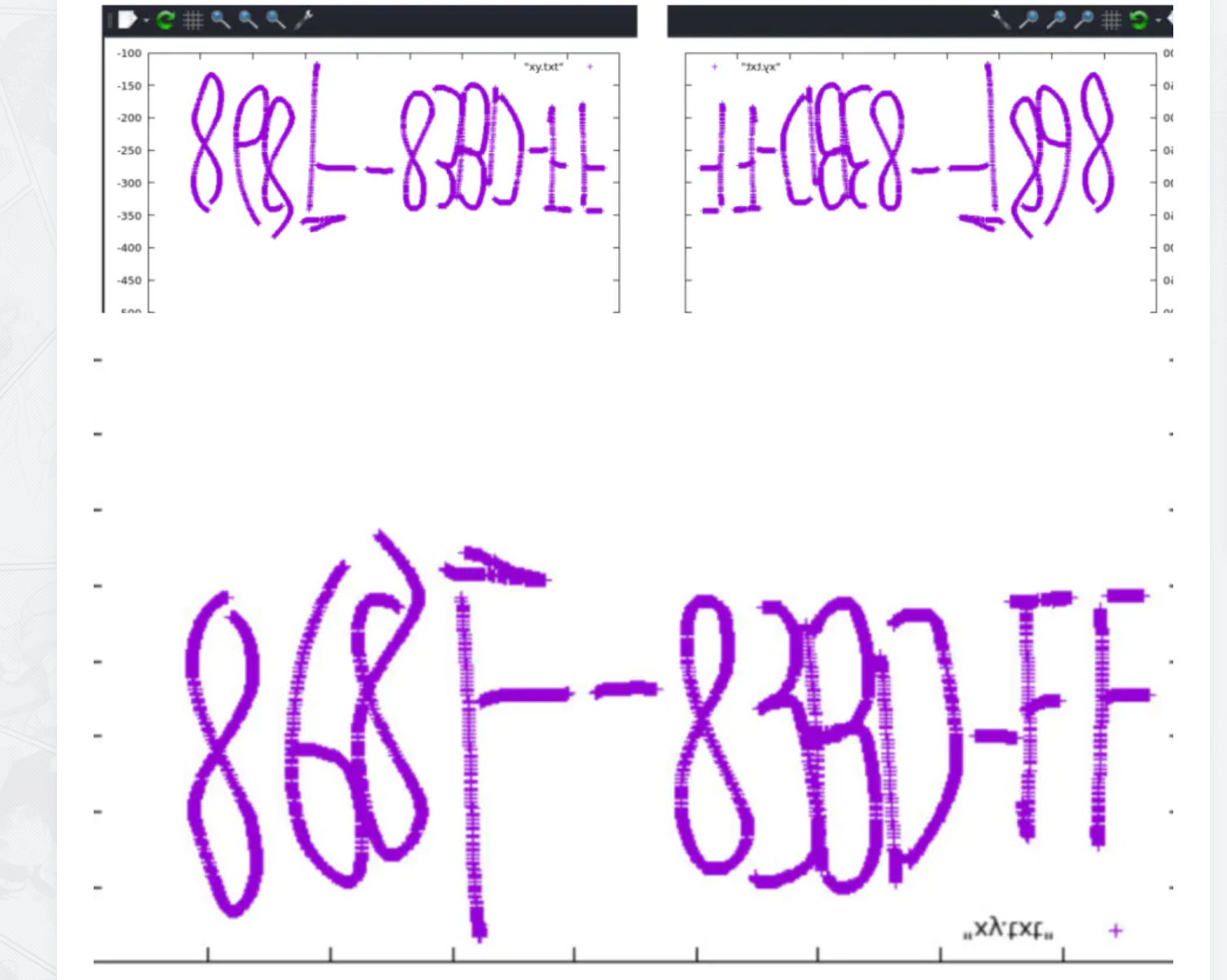 1 2 3 4 5 6 7 8 9 10 11 12 13 14 15 16 17 18 19 20 21 22 23 24 nums = []keys = open ('out.txt' ,'r' )f = open ('xy.txt' ,'w' ) posx = 0 posy = 0 for line in keys : if len (line ) != 12 : continue x = int (line [3 :5 ],16 ) y = int (line [6 :8 ],16 ) if x > 127 : x -= 256 if y > 127 : y -= 256 posx += x posy += y btn_flag = int (line [0 :2 ],16 ) # 1 for left , 2 for right , 0 for nothing if btn_flag == 1 : f .write (str(posx)) f .write (' ' ) f .write (str(posy)) f .write ('\n' )f .close ()