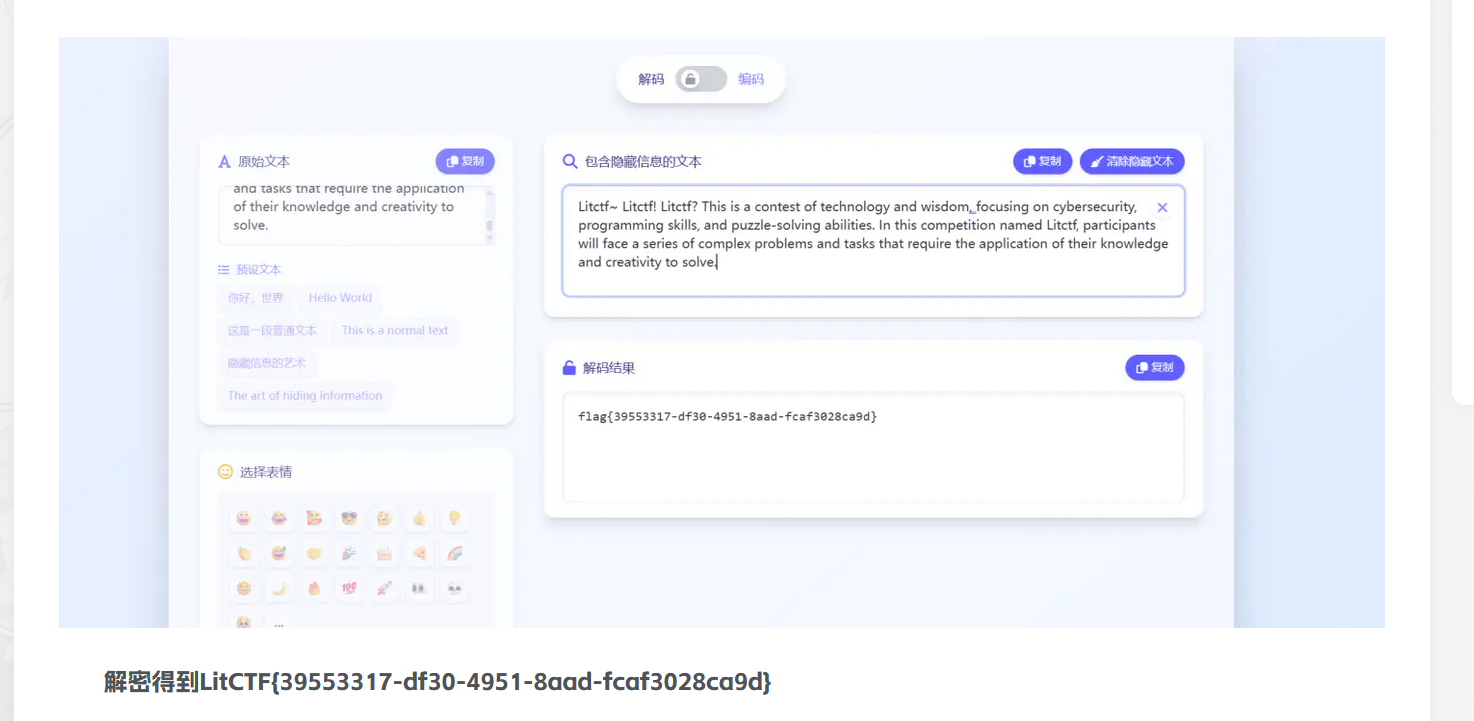 解压压缩包得到hidden-word.txt根据文件名找到对应的加密方式,可以让gpt写脚本,也可以在线网站:https://hidden-word.top/