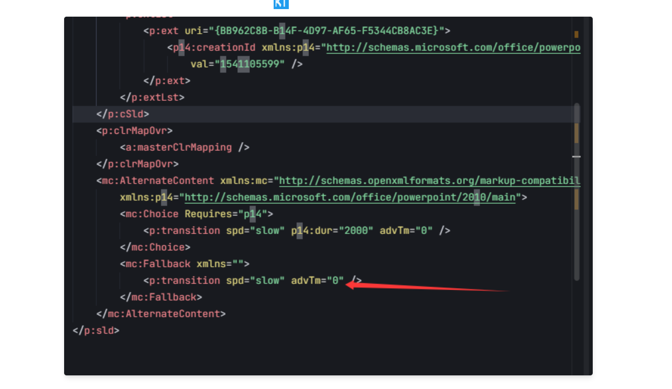 其余幻灯片根据解压的 /ppt/slides/slide?.xml 发现这里的值有差异