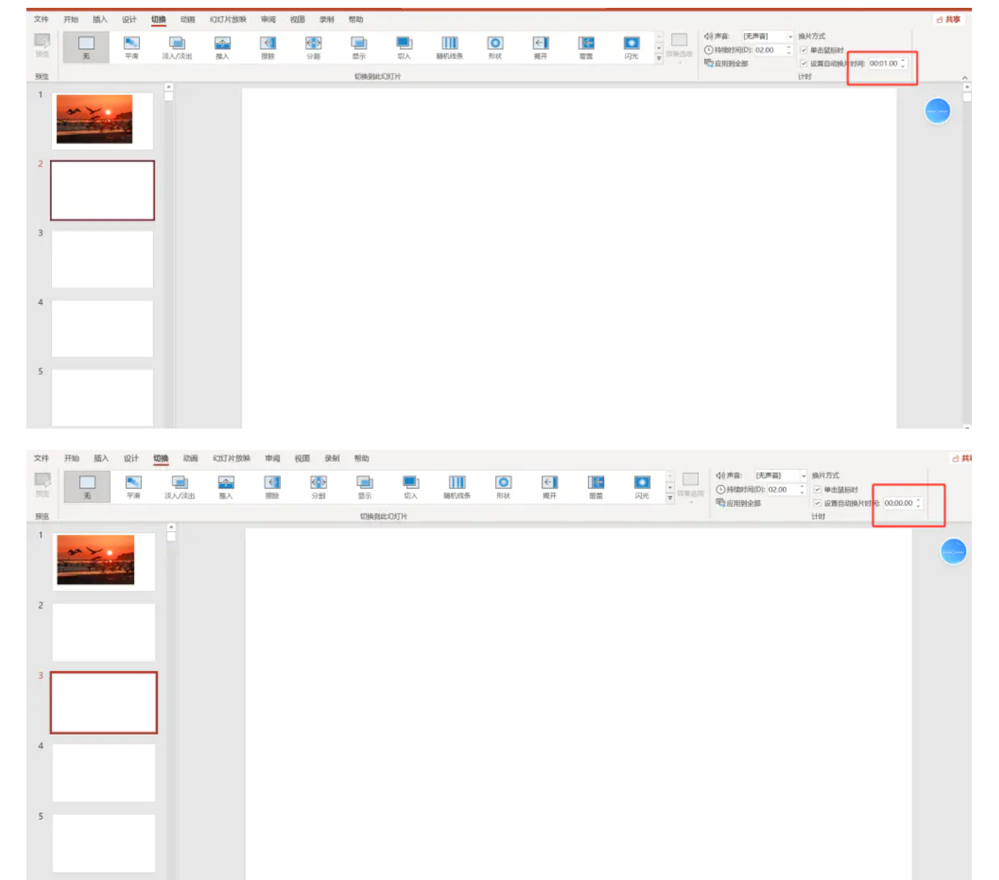 也能在选项卡-自动切换幻灯片看到。这里是幻灯片的过渡时间。